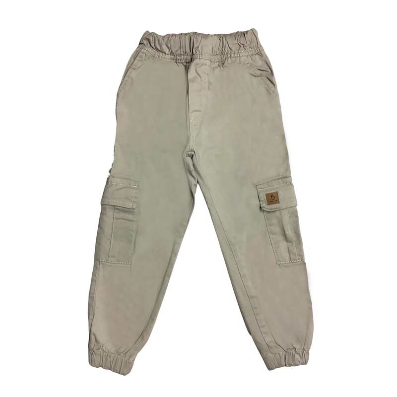 Pantalón niño gabardina, con bolsillos cargo, puños elásticos, y cordón en el interior.