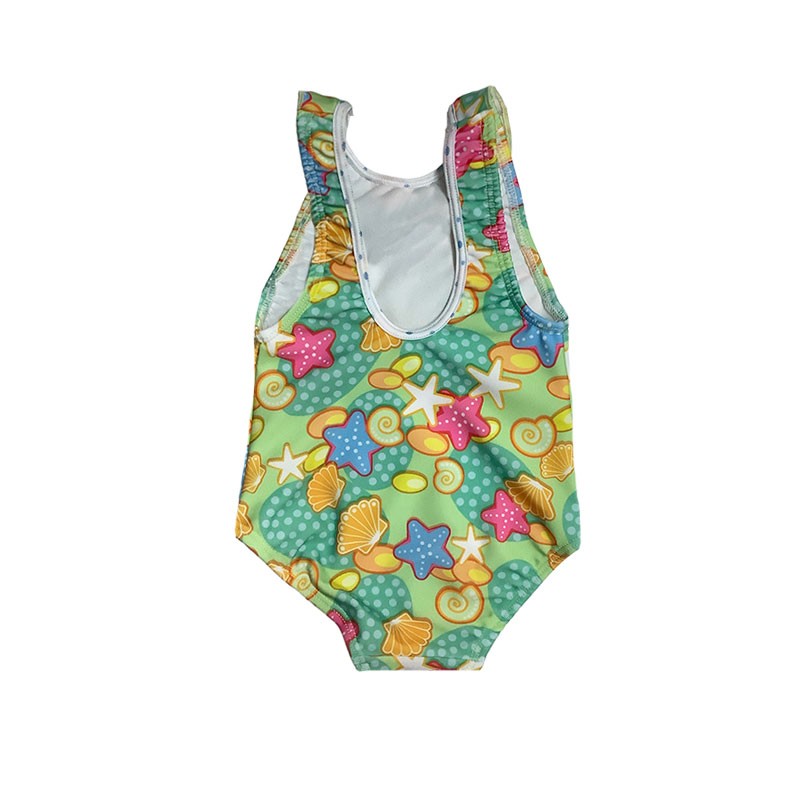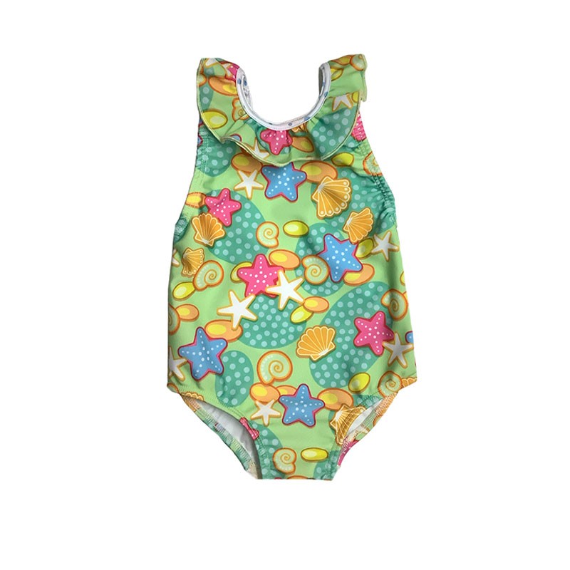 Malla entera beba lycra estampada. Clásica con volados. ESTAMPADO ESTRELLAS DE MAR.