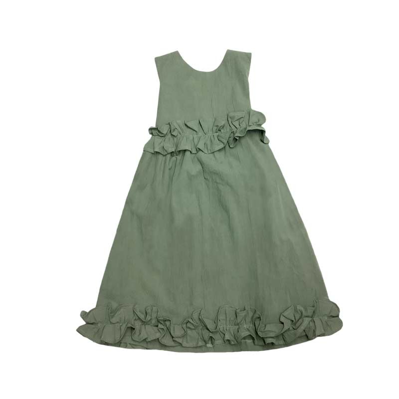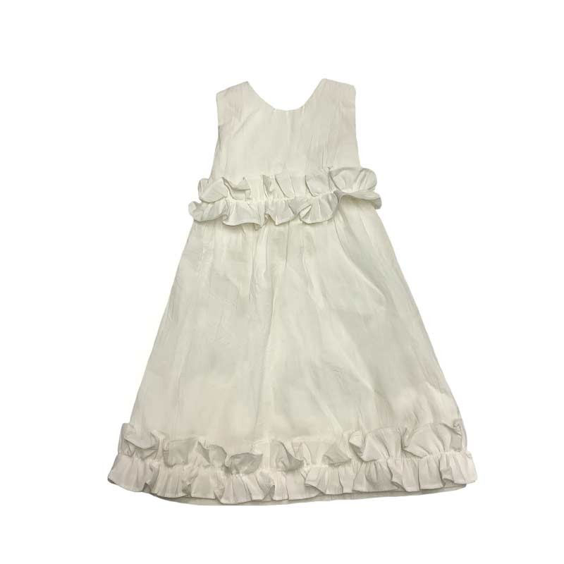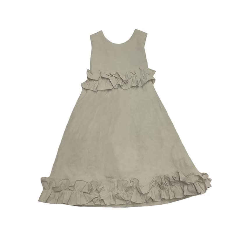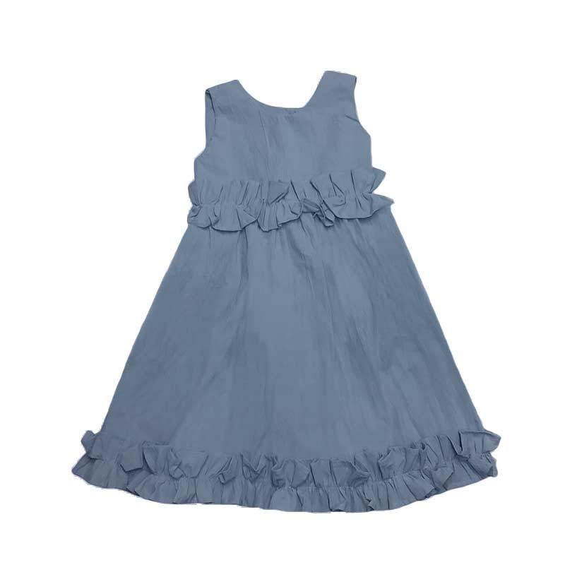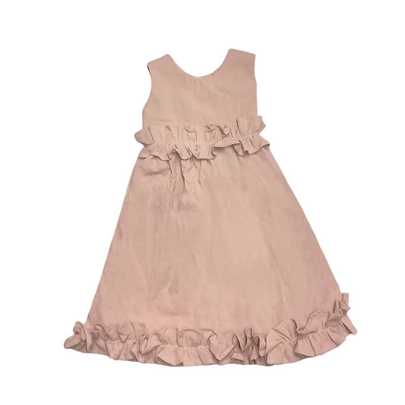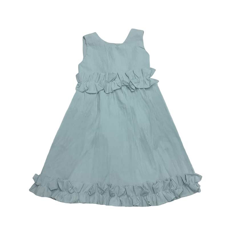 Vestido niña tussor liso con volados, lazo y botones en espalda.