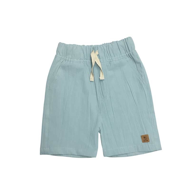 Bermuda bebé tussor lisa con cordón y bolsillos.