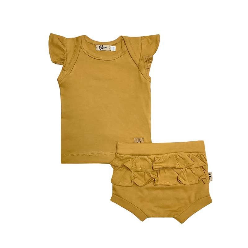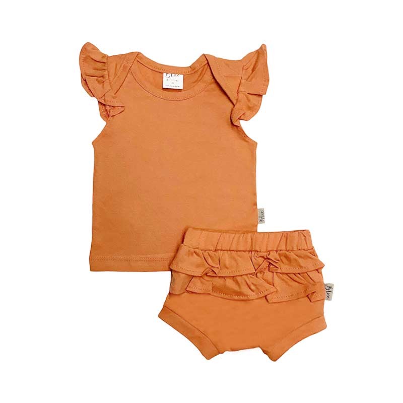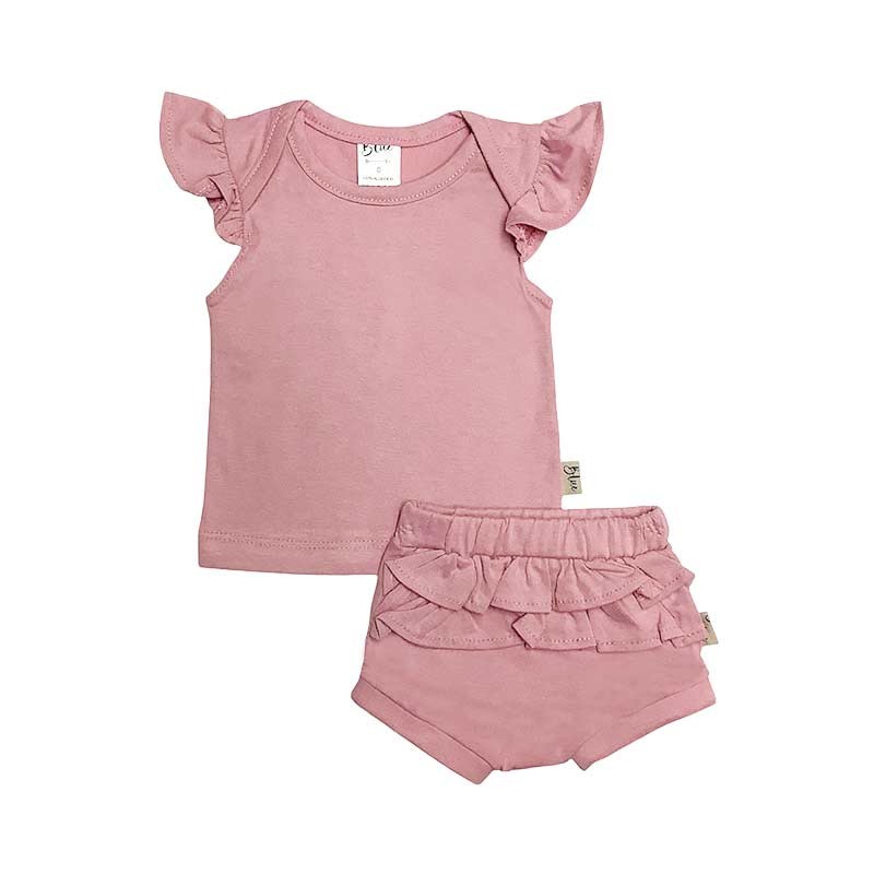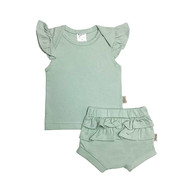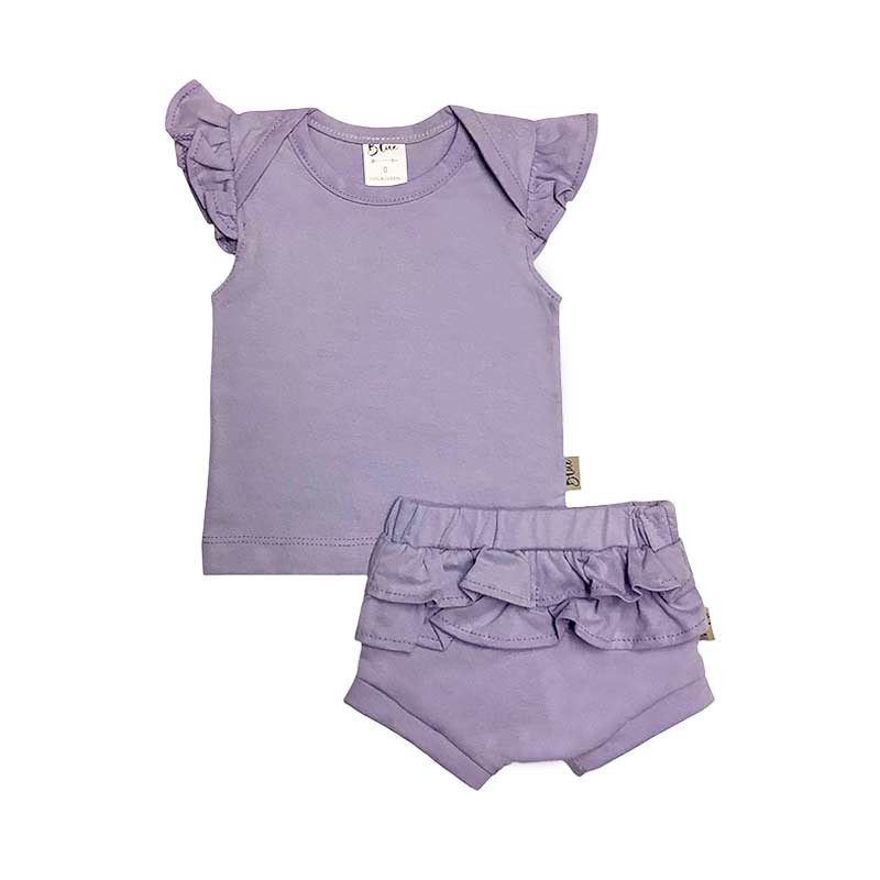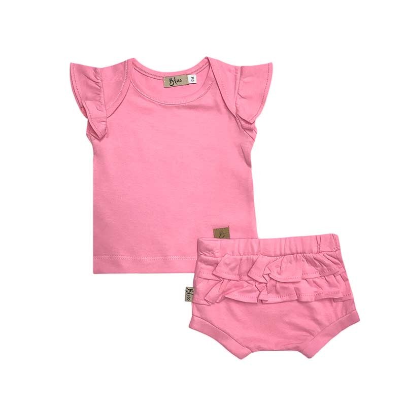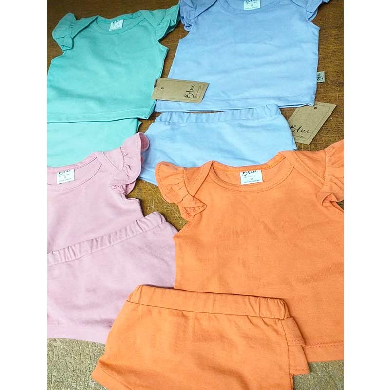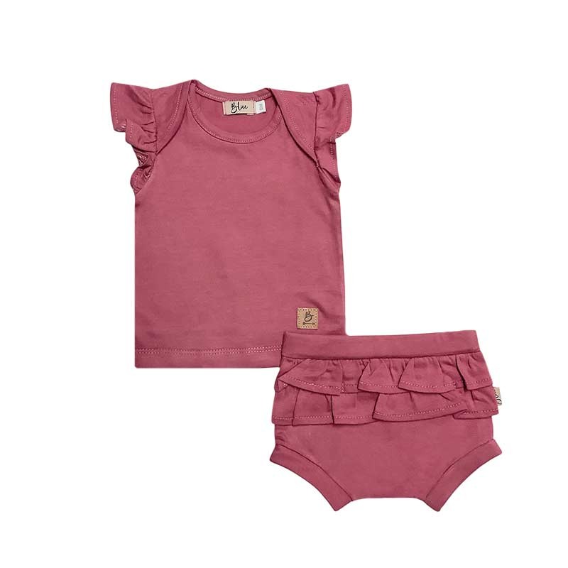 Conjunto beba algodón: remera c/voladitos + bombachón c/voladitos en la cola.
