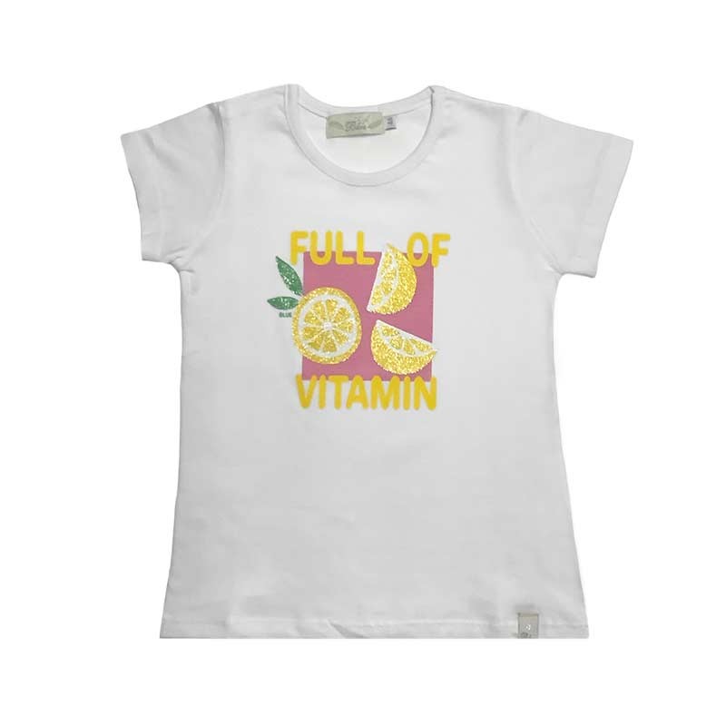 Remera niña m/cortas algodón. ESTAMPA LIMON "FULL OF VITAMIN"