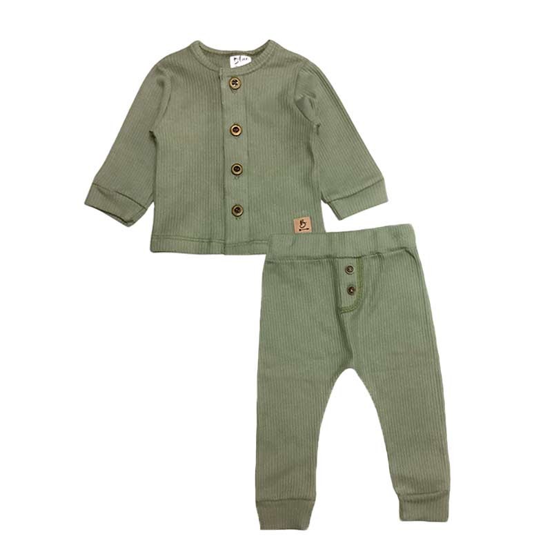 Conjunto bebé/a 2 piezas waffle: saquito liso c/botones + babucha c/detalle botones.