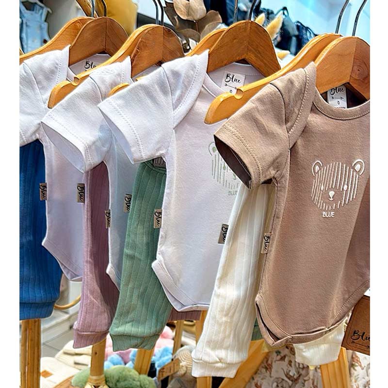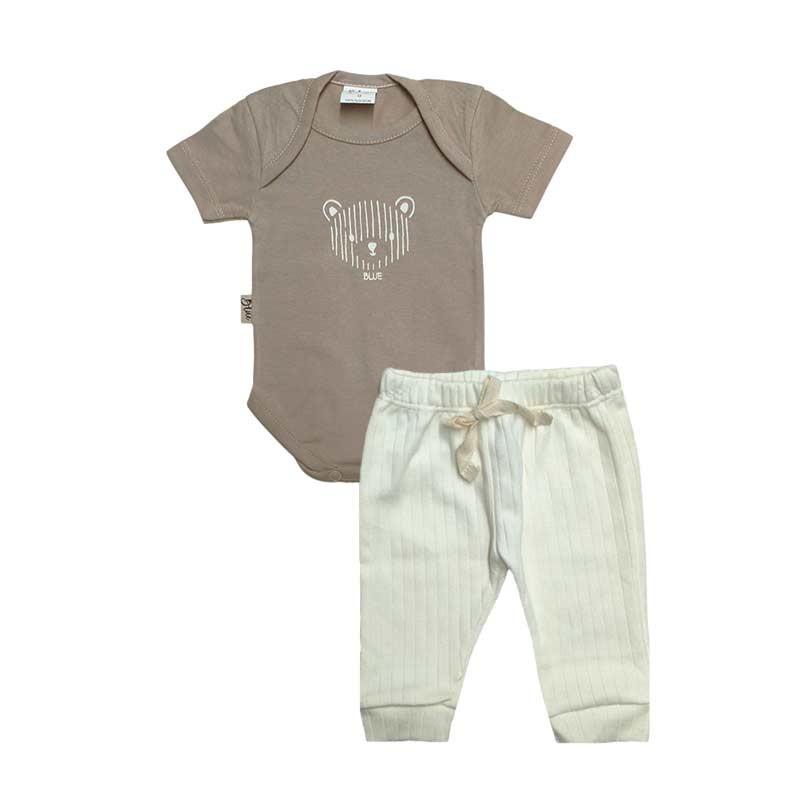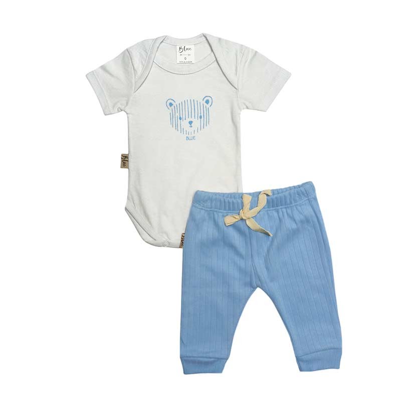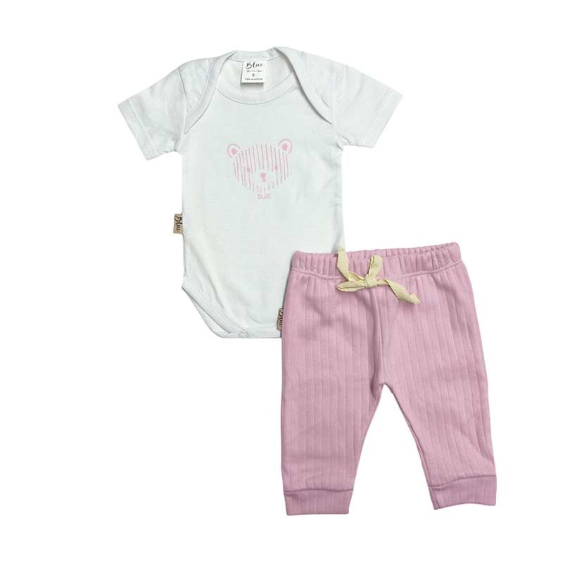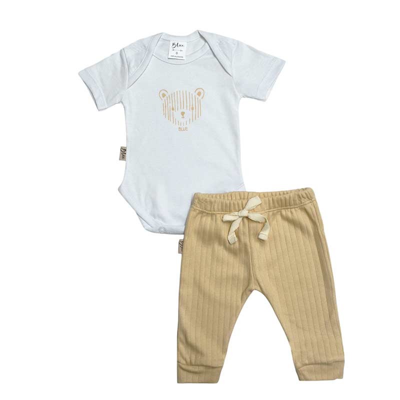 Conjunto bebé 2 piezas algodón: body c/broches y estampa Osito + babucha acanalada c/cordón.