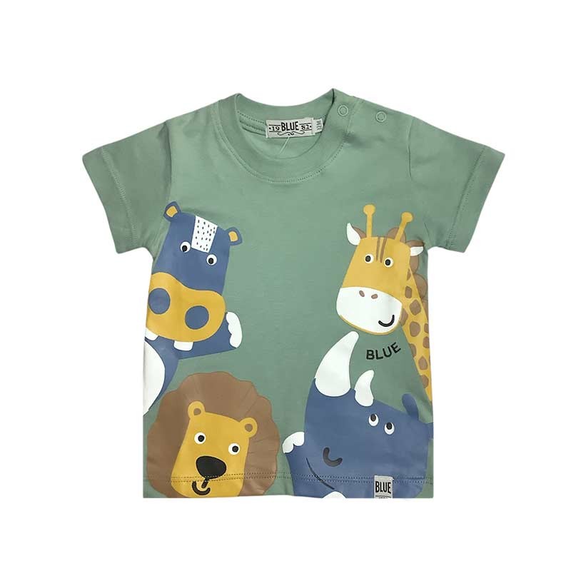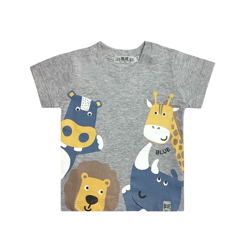 Remera bebé algodón m/cortas, con broches. ESTAMPA ANIMALITOS