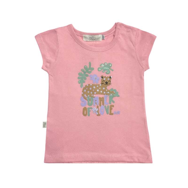 Remera beba m/cortas algodón, con broches. ESTAMPA JAGUAR "SUMMER OF LOVE"