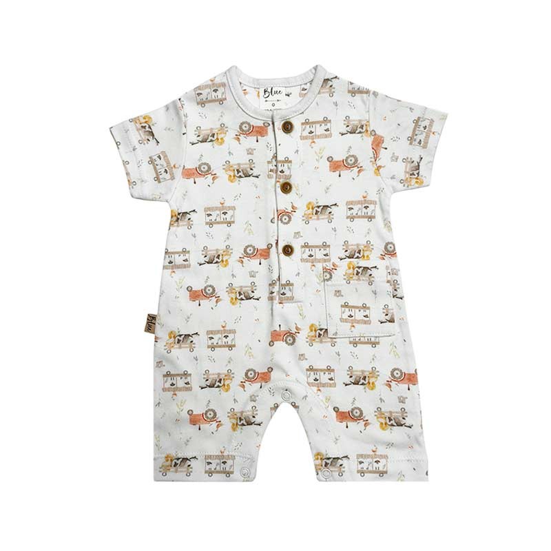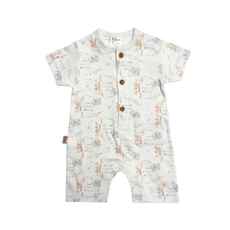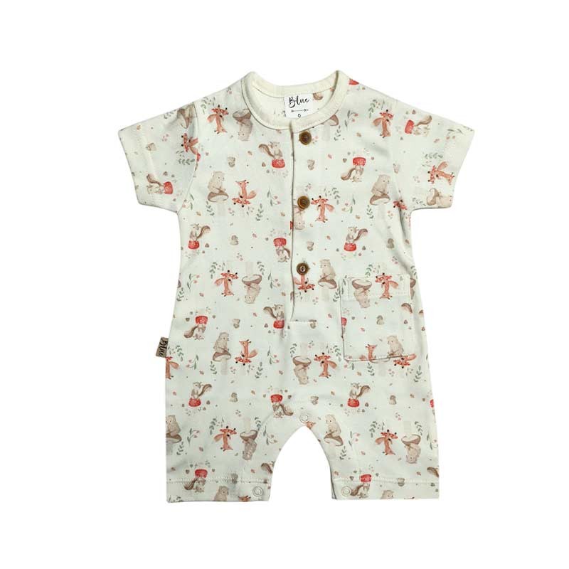 Enterito m/corta algodon estampado con botones y bolsillo.