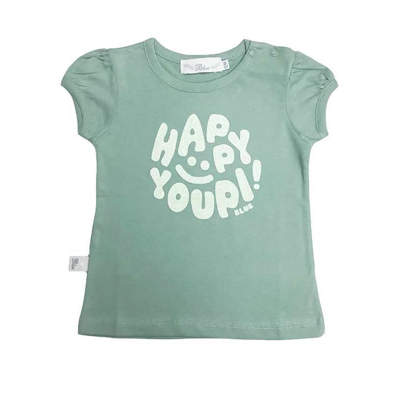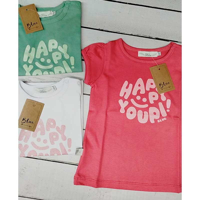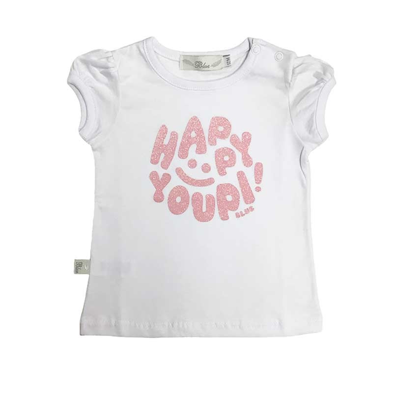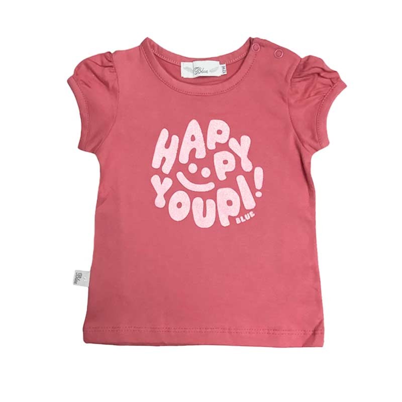 Remera beba m/cortas algodón, con broches. ESTAMPA HAPPY YOUPI!