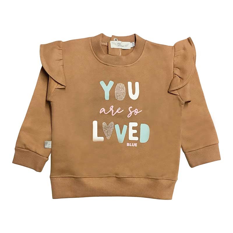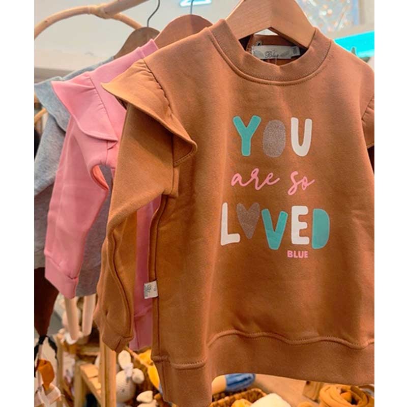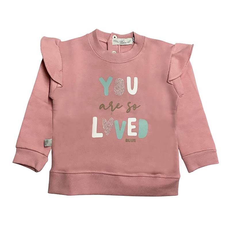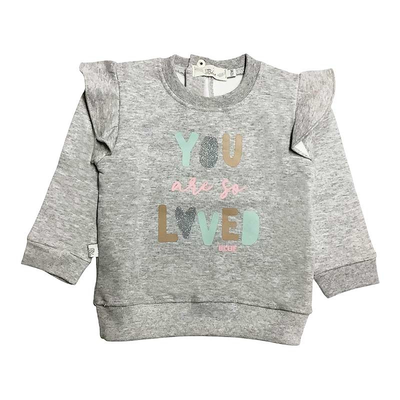 Buzo beba frisa, con voladitos en hombros, y puños. ESTAMPA YOUR ARE SO LOVED