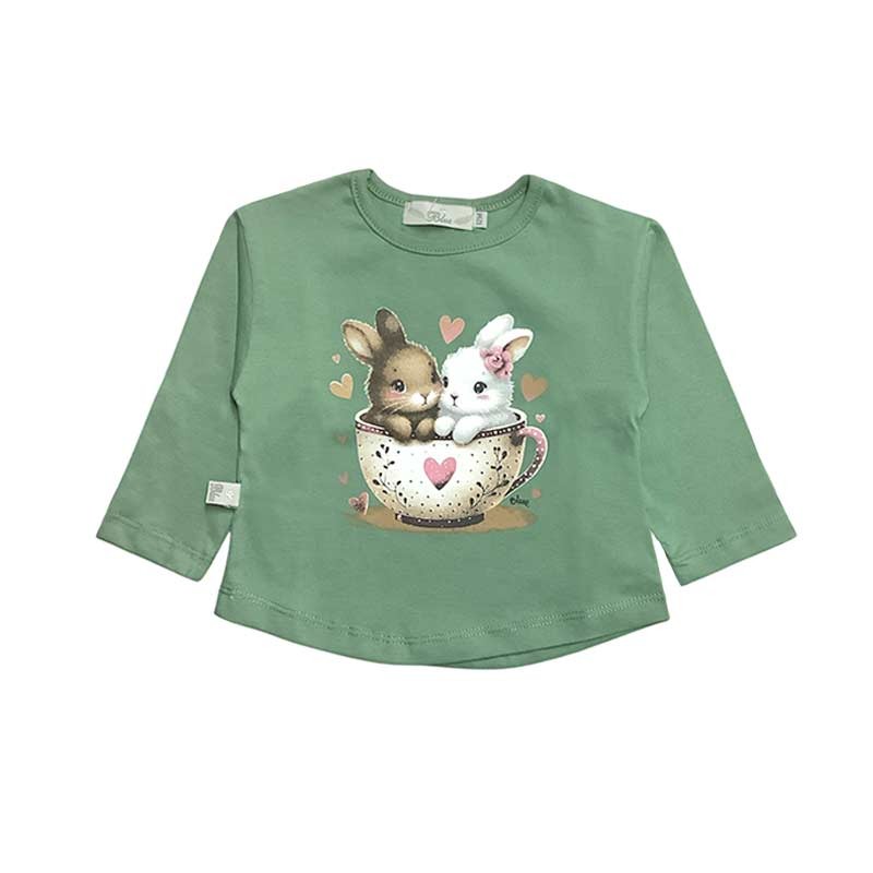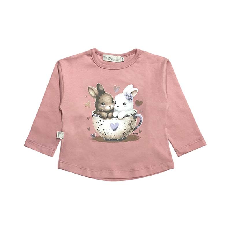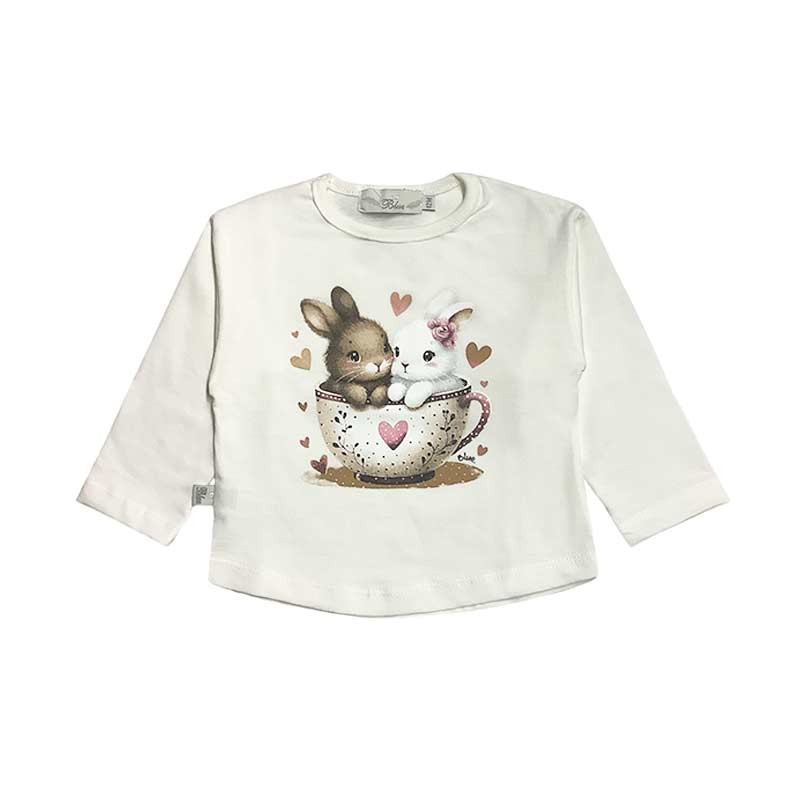 Remera beba m/largas, con broches. ESTAMPA TAZA CONEJOS