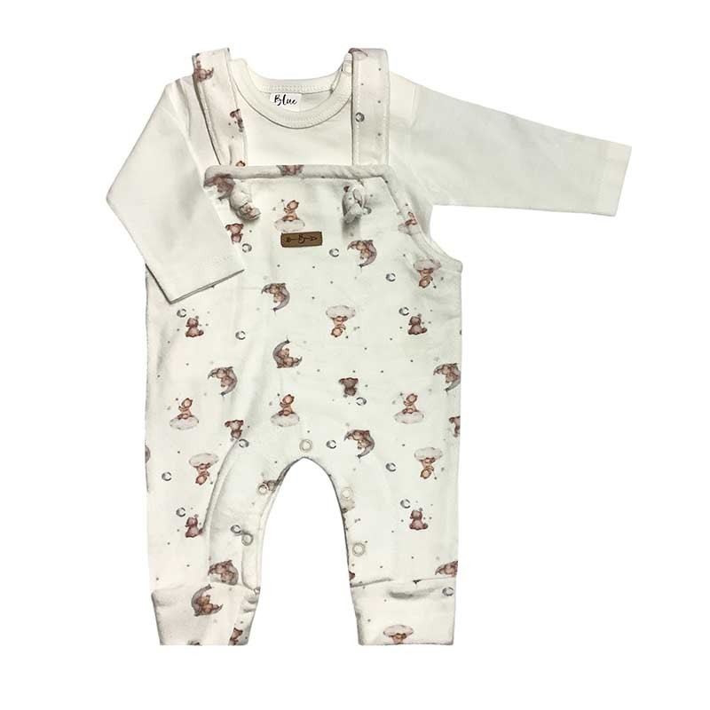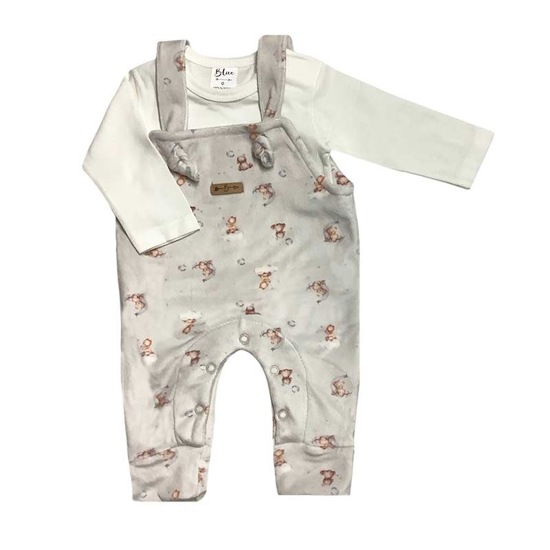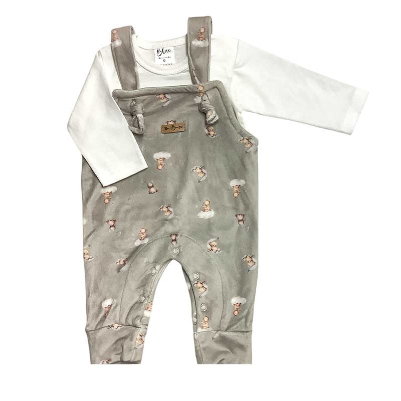Set bebé/a x 2 piezas: remera m/larga algodón lisa + jardinero plush digital estampado ositos